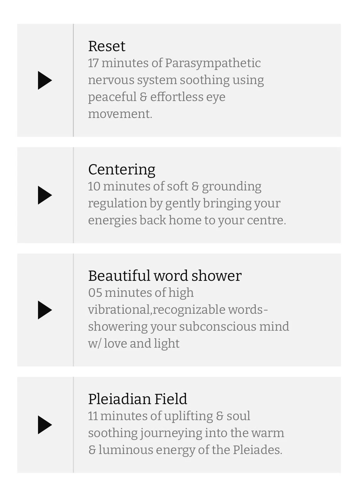 Guided Meditation Library Subscribe time to breatheMy library is currently updated weekly❉Secure payment via Stripe You may unsubscribe at any time.Opening price:$3.33 a month ❈ ❉ ❊ sit / rest / sleep / reset / ascend Subscribe Current Selection